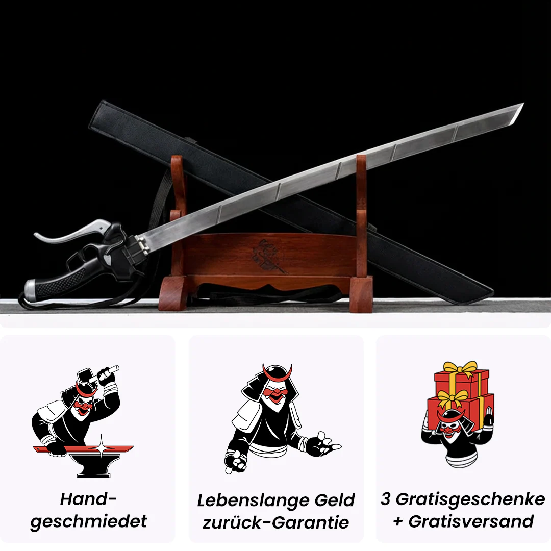 Entdecken Sie das Schwert der Aufklärungstruppe, ein hochwertiges Sammlerstück aus Attack on Titan. Fachmännisch gefertigt mit einer Klinge aus Kohlenstoffstahl, vereint dieses Schwert authentische Details der ikonischen 3D-Manöver-Ausrüstung und ist ideal für Cosplay und Sammler.