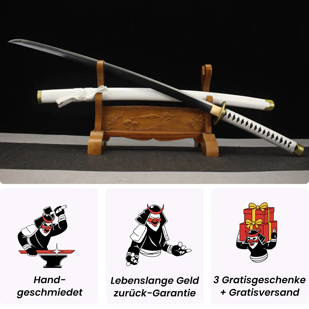Entdecken Sie das Katana Wado Ichimonji von Zoro Roronoa, aus 1060er Kohlenstoffstahl, eine außergewöhnliche Klinge inspiriert von One Piece. Dieses authentische, handgefertigte japanische Katana verkörpert Ehre und Kraft. Perfekt für Fans von One Piece! Trete unserer Samurai-Armee bei!