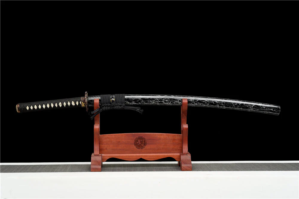 Das Katana Wild, ein wahres Kunstwerk, geschmiedet aus Hybrid-Kohlenstoffstahl: 1060 & 1095. Ein Katana, das mit alten traditionellen Methoden geschmiedet wurde. Seine Klinge ist mit verbrannter Erde bedeckt und schlieĂlich von Hand geschmiedet. Sein Saya ist einzigartig.