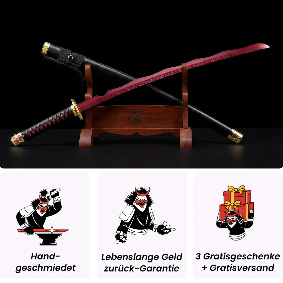 | Griff (Tsuka) | Rotes Kunstleder mit schwarzer Umwicklung |